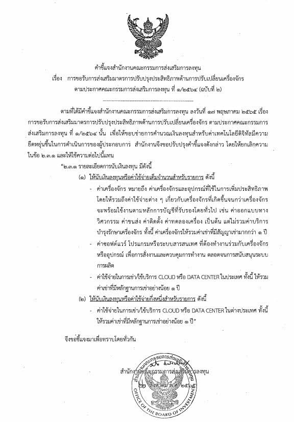 : เพื่อให้ขอบข่ายการคำนวณเงินลงทุนสำหรับค่าเทคโนโลยีดิจิทัลมีความยืดหยุ่นขึ้นในการดำเนินการของผู้ประกอบการ